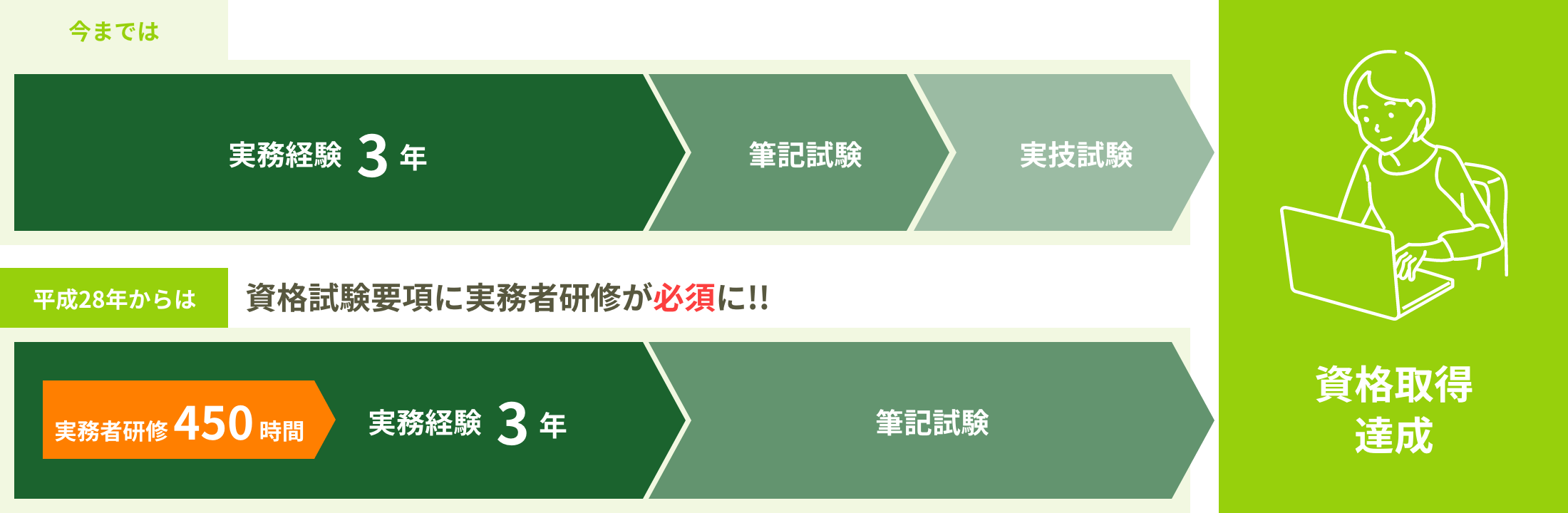 平成28年度の介護福祉士国家試験から 「実務者研修の修了」 が義務付けられました