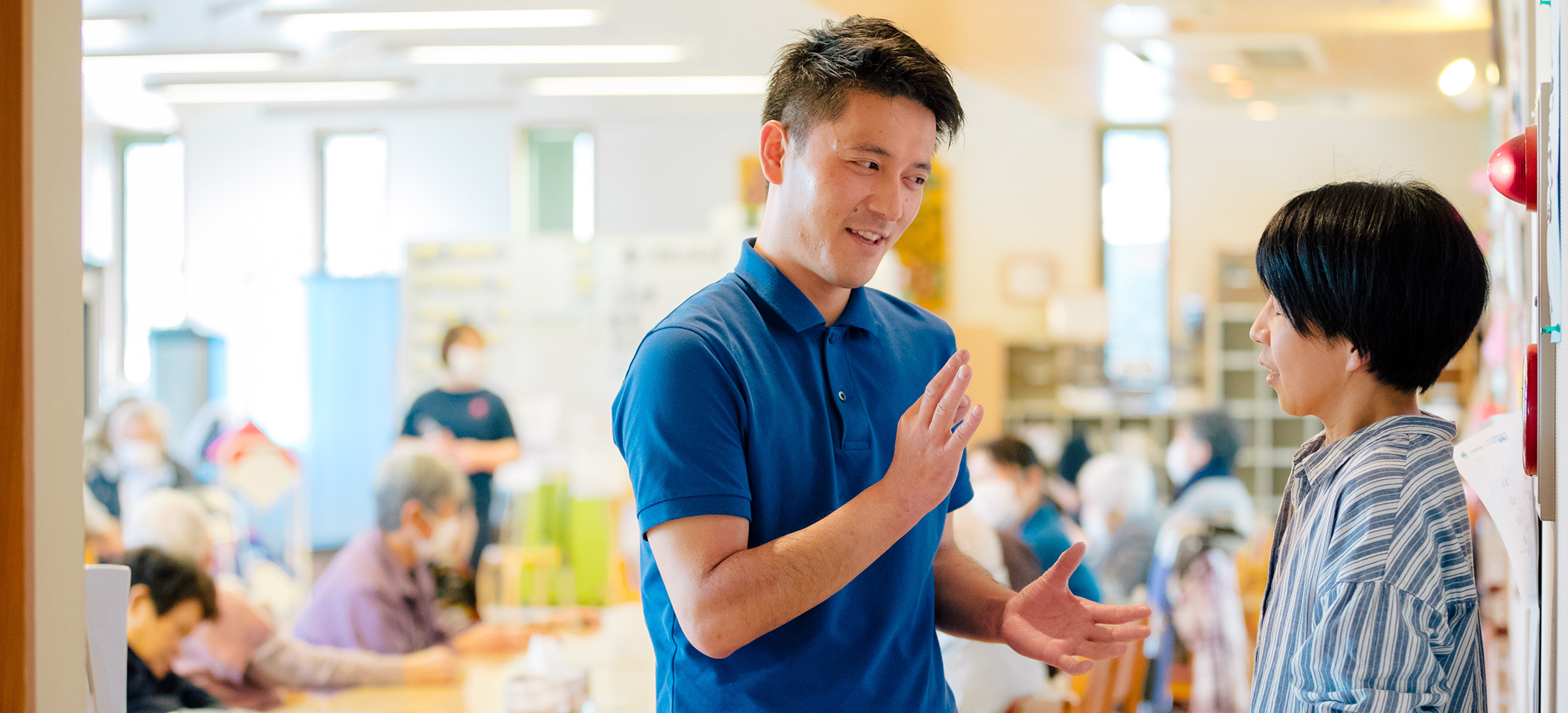 デイサービスでの介護業務を経て、2019年より主任としてデイサービス・グループホームの全体を見る立場となりました。基本的にはデイサービスでの業務が多いのですが、通常の介護業務の他、施設の運営にも携わらせていただいています。
