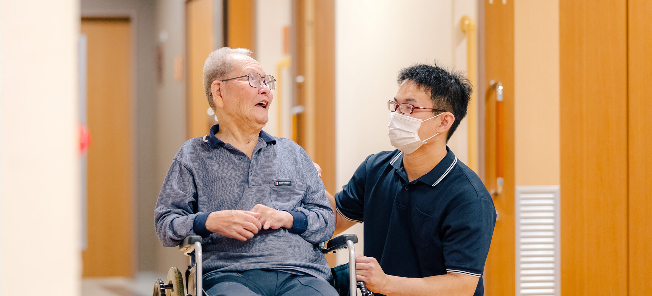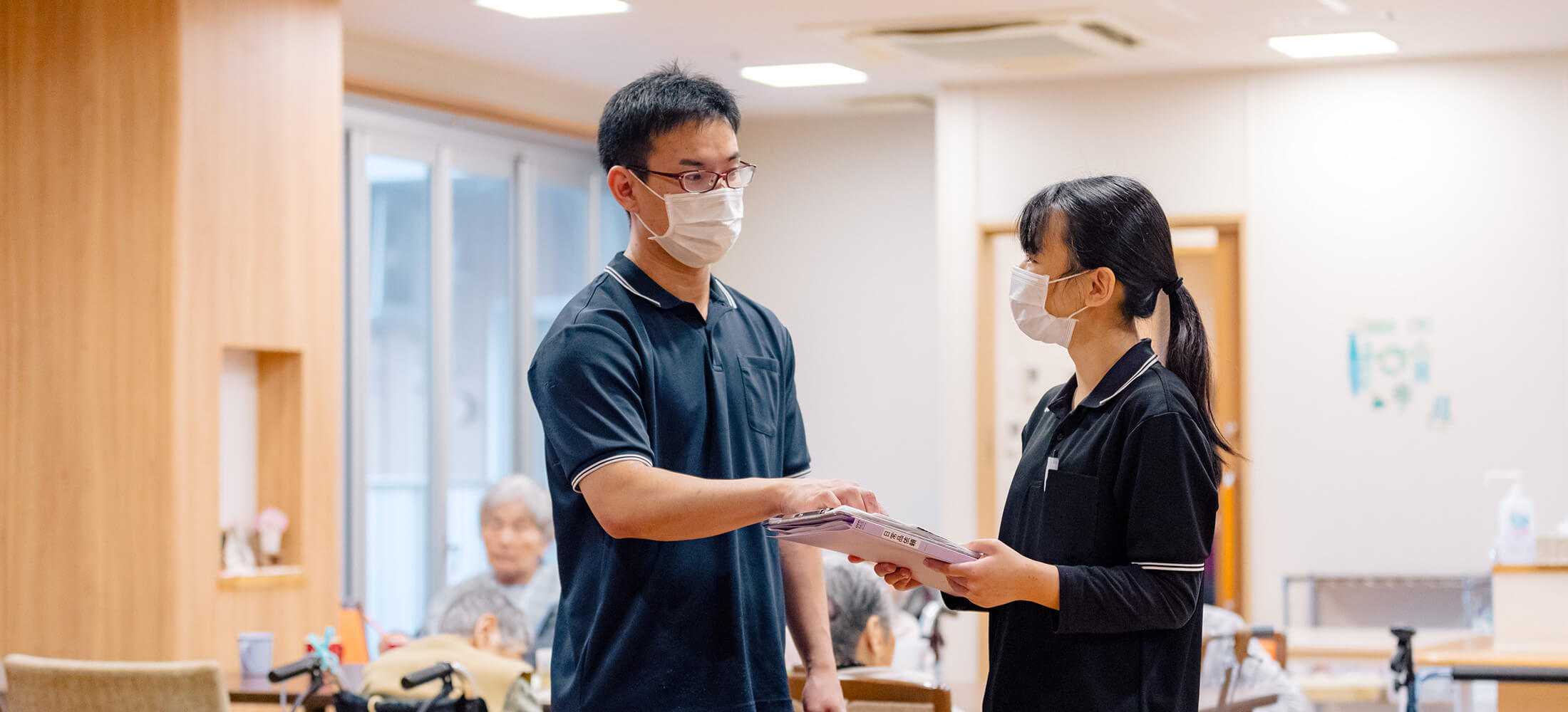 私はユニットリーダーとして、現場のご利用者様の介助やユニット職員のシフト作成などを行なっています。現在はコロナ禍ということもあり、ご利用者様との買い物や外食といった外出レクリエーションができないのですが、コロナが収束したら積極的に活動していきたいなと考えています。