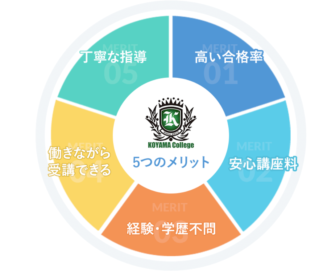 スマートフォン等を利用して、問題解答・提出・学習ができるEラーニング通信学習システムと通学(9日日間)で修了できる。