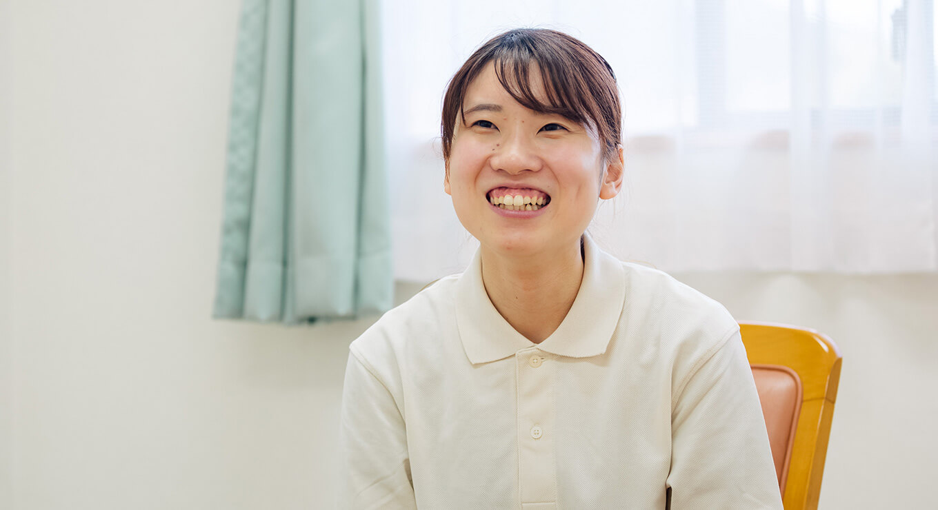 未経験からスタートしたので、ご利用者様一人ひとりに合ったサポートを見つけていくのに時間がかかりました。例えば、認知症の方や耳の遠い方では、声かけや対応の仕方も違ってきます。入職して1年ですので、まだまだ覚えることがたくさんあります。ご利用者様としっかりコミュニケーションをとりながら、安心・安全の介護を提供していきたいです。